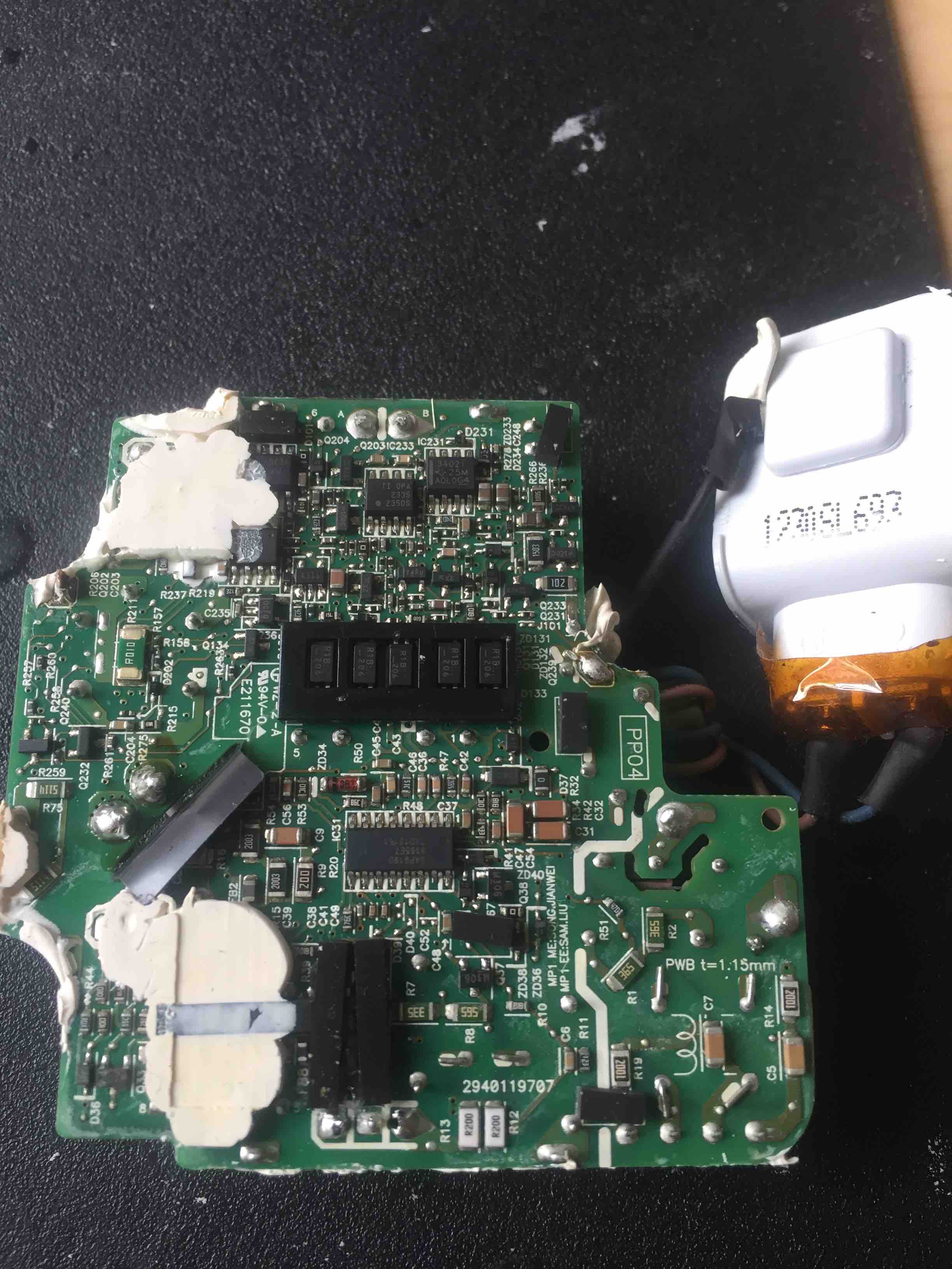 Hình ảnh so sánh giữa sạc chính hàng và hàng fake: sạc Fake ở dưới linh kiện thiếu rất nhiều