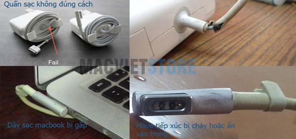 Một số hình ảnh sử dụng dây sạc macbook không đúng cách