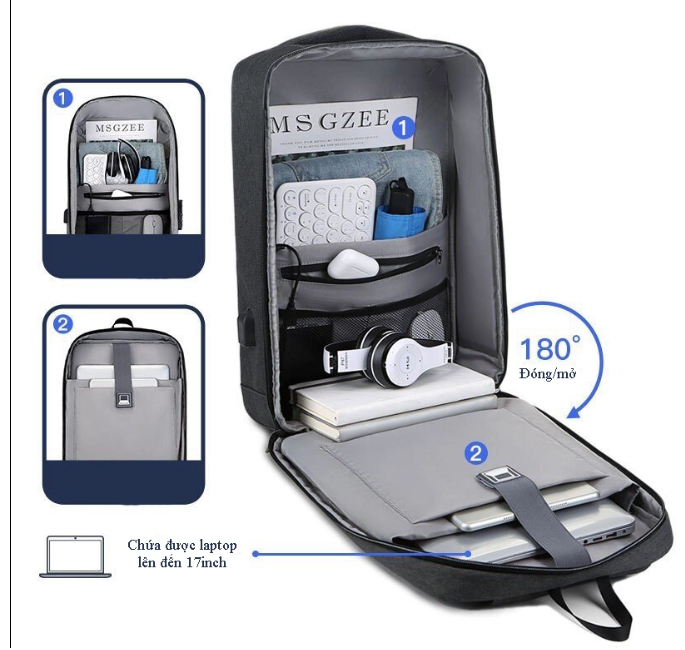 - Ngăn đựng laptop 15.6", được thiết kế chống sốc cho laptop.