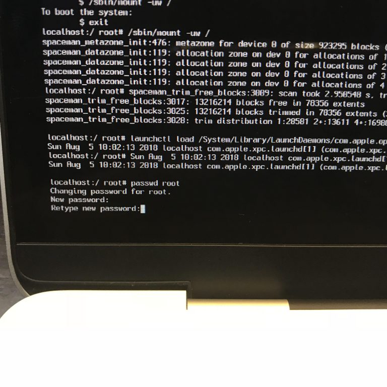 Giữ tổ hợp ⌘+S trước khi màn hình xám xuất hiện để boot vào chế độ Single User. Thực hiện lần lượt các câu lệnh từ bước 2 bên dưới.
