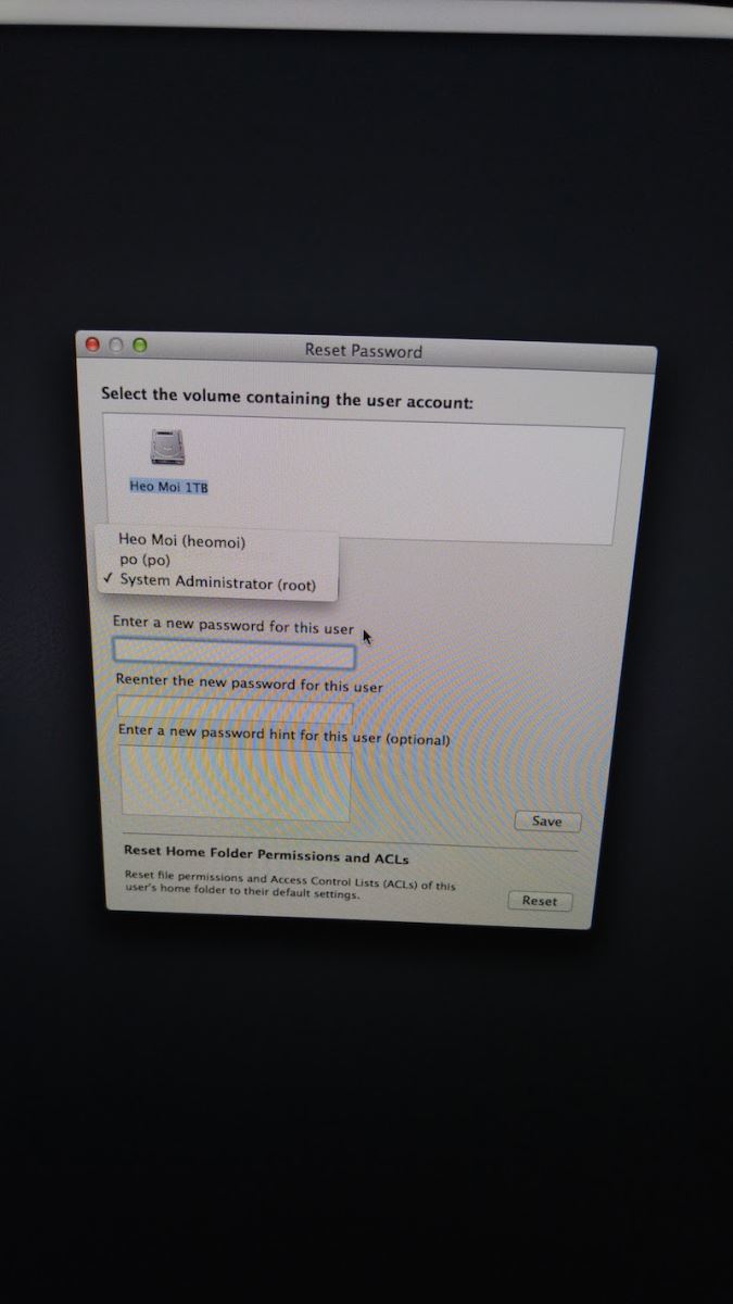 Mục đích: đăng nhập được vào Mac, can thiệp vào Folder User người dùng cũ để cứu dữ liệu ra và reset password thông qua System Preferences.