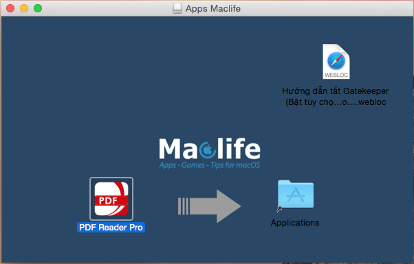 Bạn chỉ việc kéo file "PDF Reader Pro" sang Folder Applications để tiến hành cài đặt và sử dụng ( phần mềm đã crack sẵn)
